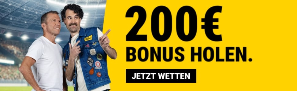 Der Wettbonus muss gemeinsam mit der Einzahlung binnen 60 Tagen 6x zur Mindestquote von 1.70 umgesetzt werden. Es gelten die AGB.