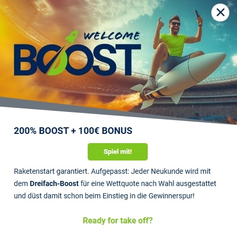 Der Boost kann beliebig und damit auch mit Rapid – Austria Quoten eingelöst werden. Der Bookie verdreifacht die ausgewählte Quote. Der maximale Extra-Gewinn beträgt 30 € und ist an keine Umsatzbedingungen gebunden.