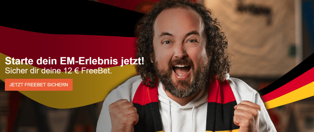 Oddset online punktet zur EM 2024 mit einer 12 € Gratiswette für neue Kunden. Die Basis für den Erhalt der Freebet sind eine Oddset Anmeldung via Wettbasis-Button (unten) und eine Mindesteinzahlung von 5 €. Danach schreibt der EM Wettanbieter die Gratiswette gut.