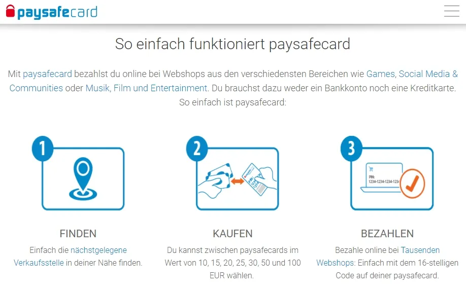 Hierbei brauchen Nutzer nur die Paysafecard kaufen, den Betrag bei der Einzahlung festlegen und den 16-stelligen PIN-Code einzugeben.