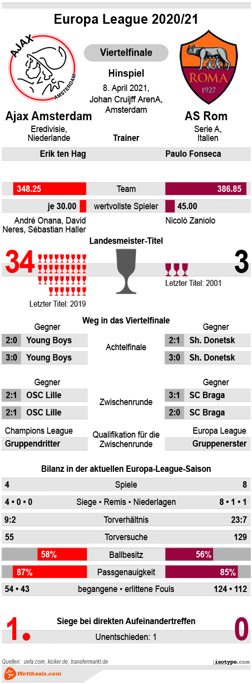 Ajax Amsterdam vs. AS Rom - beste Quoten Europa League 2021
