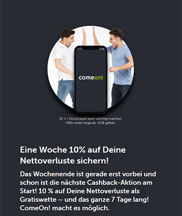 Comeon: Eine Woche 10% auf Deine Nettoverluste sichern!