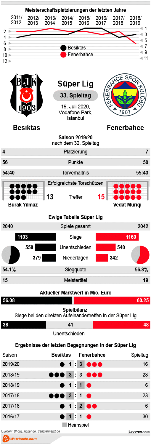 Besiktas vs. Fenerbahce Direkter Vergleich [+ Infografik]