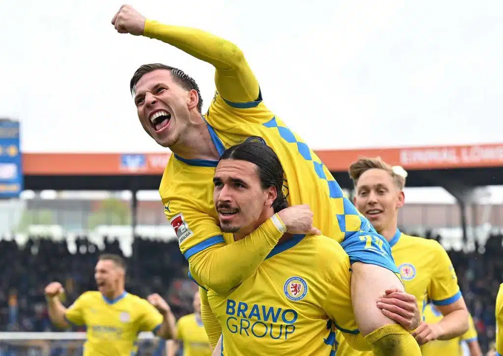 Aktuell ist die Eintracht mit Preußen Münster punktgleich, hat jedoch das deutlich schlechtere Torverhältnis aufzuweisen. Heißt: Die Löwen müssen zuhause mehr Punkte holen als Münster in Ulm. Sollte sich zwischen Braunschweig und Nürnberg sogar die Prognose auf den Heimsieg bezahlt machen, bestünde zudem die Chance, an der Spielvereinigung Greuter Fürth vorbeizuziehen, sofern das Kleeblatt zuhause nicht den HSV bezwingt.