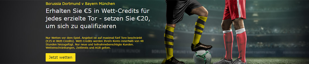 In unseren Augen ist es sowieso keine gute Idee, eine Wette auf den Sieger in dieser Partie zu platzieren. Müssten wir uns allerdings festlegen, würden wir aufgrund der (zu) hohen Quoten eher die doppelte Chance 1X anpeilen. Unsere Empfehlung ist es jedoch, zwischen Dortmund und Bayern einen Tipp auf mindestens vier Treffer im Spielverlauf abzugeben.