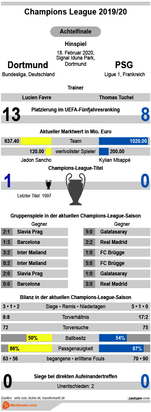 Key-Facts – Dortmund vs. PSG Tipp