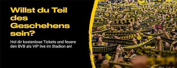 Wenn ihr euch – neben der Dortmund vs. VfB Stuttgart Prognose – auch schon für die EURO 2024 interessiert, empfehlen wir euch einerseits die Übersicht der derzeitigen EM Bonusangeboten und legen euch andererseits eine Registrierung bei Intertops ans Herz. Bei Intertops habt ihr sogar die Chance, zwei Tickets für das Finale der Europameisterschaft in Deutschland zu gewinnen. Wie ihr am Gewinnspiel teilnehmt, erfahrt ihr beim Klick auf den nachstehenden Banner.