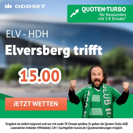 Sicher dir bei Oddset den Quoten Turbo & erhalte eine Quote von 15.00 für ein Tor von Elversberg