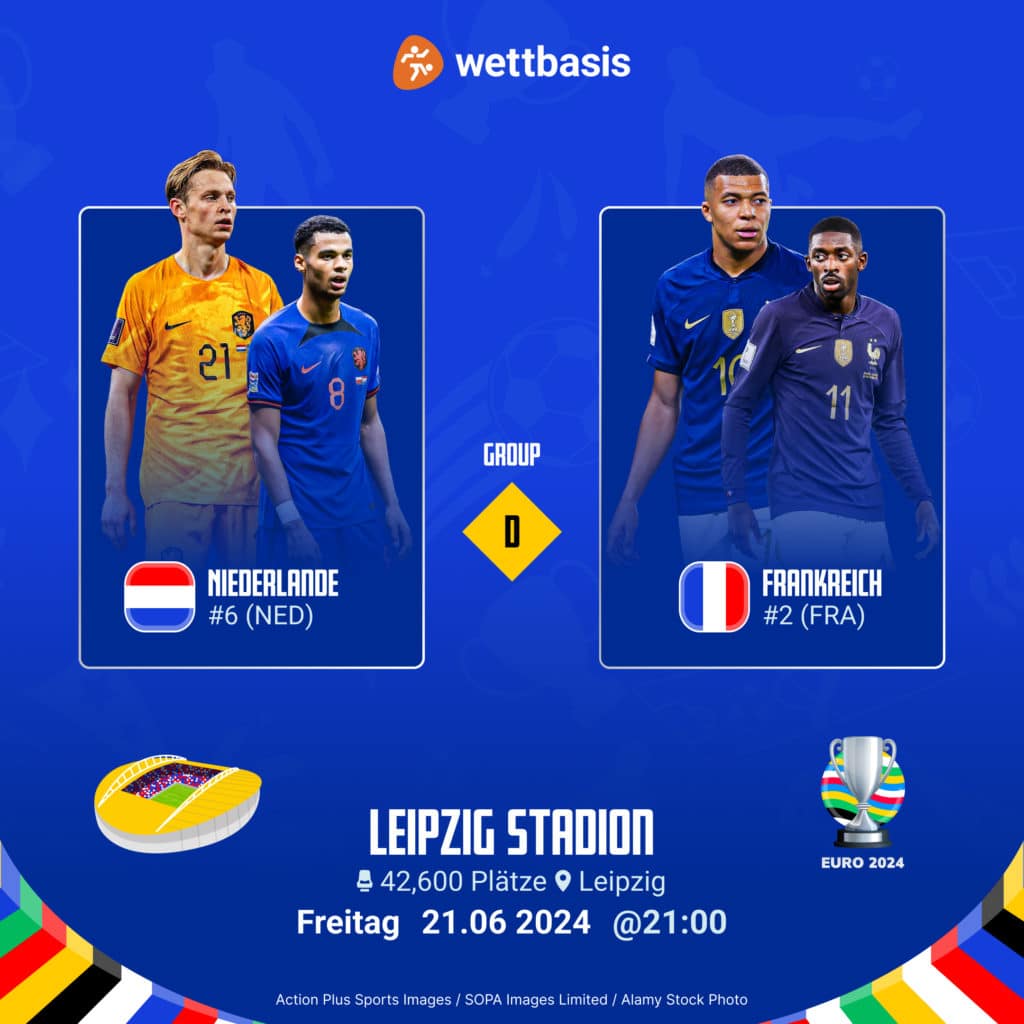 Die Chancen dafür stehen nicht schlecht, allerdings muss Frankreich wahrscheinlich auf Superstar Kylian Mbappe verzichten, nach seinem Nasenbeinbruch im Spiel gegen Österreich. Dabei sind die Niederländer eigentlich sein Lieblingsgegner – sechs Tore erzielte der französische Stürmerstar in seinen fünf Begegnungen gegen die Koeman-Elf. Sein Fehlen dürfte auch der Hauptgrund sein warum die Bookies ihre Quoten für eine torreiche Begegnung nach oben gesetzt haben.