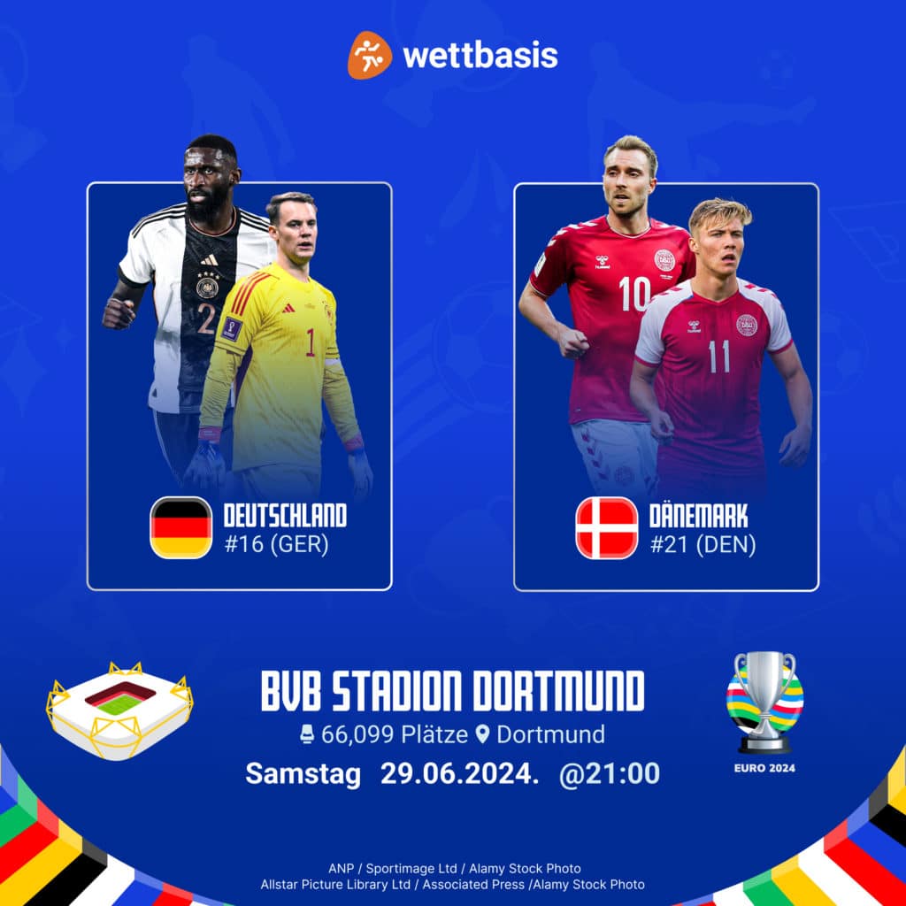 Dass die Deutschen dabei als Favorit ins Rennen gehen, verwundert nicht weiter – neben der größeren individuellen Qualität auf Seiten der Gastgeber verlor Dänemark die letzten fünf EM-Duelle gegen Gastgebernationen. Überhaupt reichte es für die von Kasper Hjulmand trainierte dänische Auswahl nur zu drei Siegen in den letzten 15 Partien bei großen internationalen Turnieren.