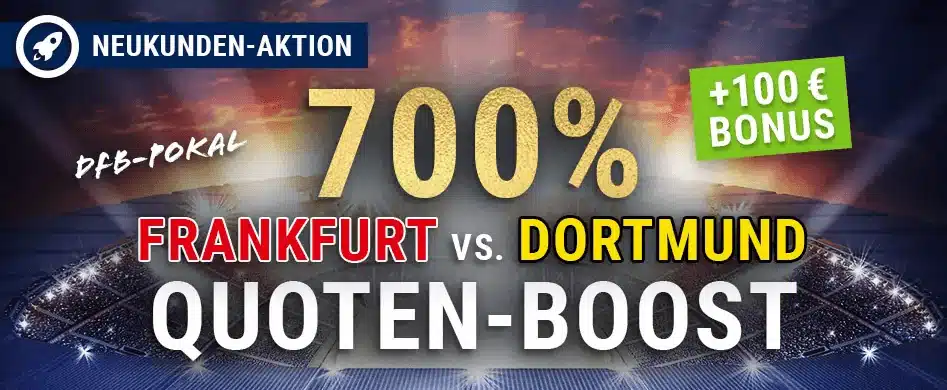 Der Bet-at-Home Quoten-Boost erhöht deine 1/X/2-Wette auf Frankfurt vs. BVB um 700% + Bonus bis zu 100€