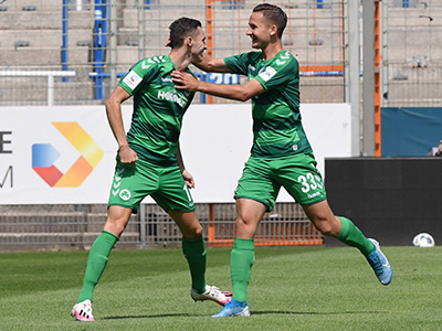 Jubel Branimir Hrgota Greuther Fürth, li., und Paul Seguin Greuther Fürth Fussball, 21.06.2020, Saison 2019 2020, 2. Bundesliga, 33. Spieltag VfL Bochum - SpVgg Greuther Fuerth 2:2, Foto: TEAM2sportphoto Bochum Nordrhein Westfalen Deutschland *** Cheers Branimir Hrgota Greuther Fürth, left, and Paul Seguin Greuther Fürth Football, 21 06 2020, season 2019 2020, 2 Bundesliga, 33 matchday VfL Bochum SpVgg Greuther Fuerth 2 2, photo TEAM2sportphoto Bochum North Rhine-Westphalia Germany Team2