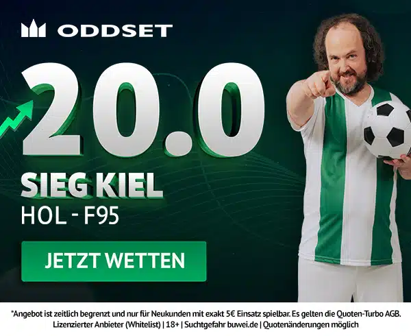 Sichere dir bei Oddset den Quoten Turbo für Kiel vs. Düsseldorf & erhalte eine Quote von 20.00 für den Kiel-Sieg