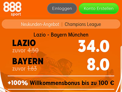 Trotzdem schlagen zwischen Lazio Rom und Bayern die Quoten relativ klar zugunsten des deutschen Rekordmeisters aus. Sollte die Biancocelesti wider Erwarten einen Sieg einfahren, würden die besten Buchmacher hierfür fast den fünffachen Einsatz auszahlen. Die Eintrittswahrscheinlichkeit eines Münchner Erfolges beträgt indes knapp 60 %.