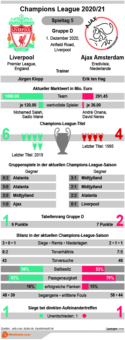 Liverpool - Ajax Amsterdam Wettquoten im Vergleich 01.12.2020