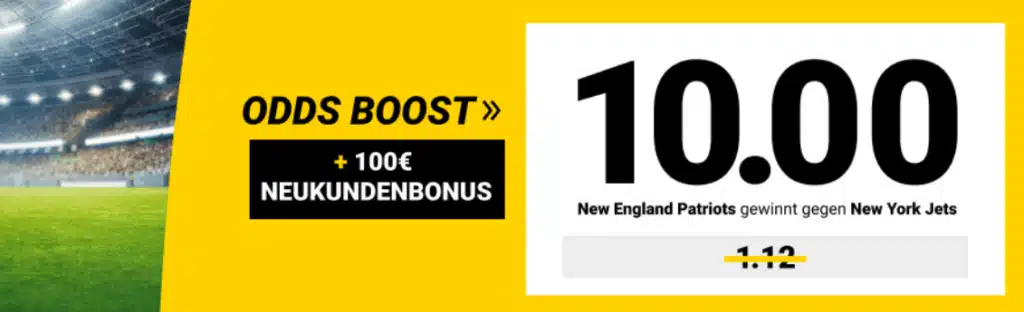 5€ auf die New England Patriots setzen und den Welcome Boost sichern.