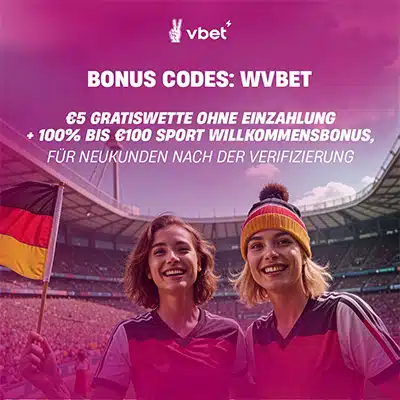 VBET offeriert mit dem Code WVBET eine 5€-Gratiswette für die Verifizierung Deines Kontos!