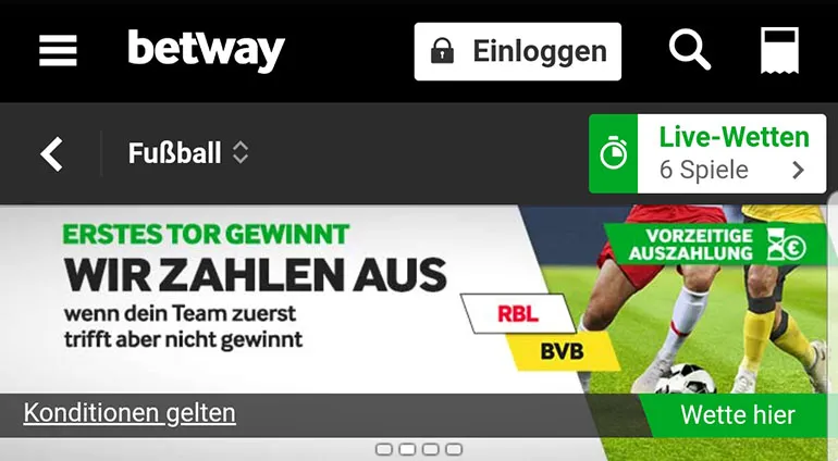 Aktion via Klick auf den Banner bei Betway in der Slideshow verfügbar | AGB gelten | 18+