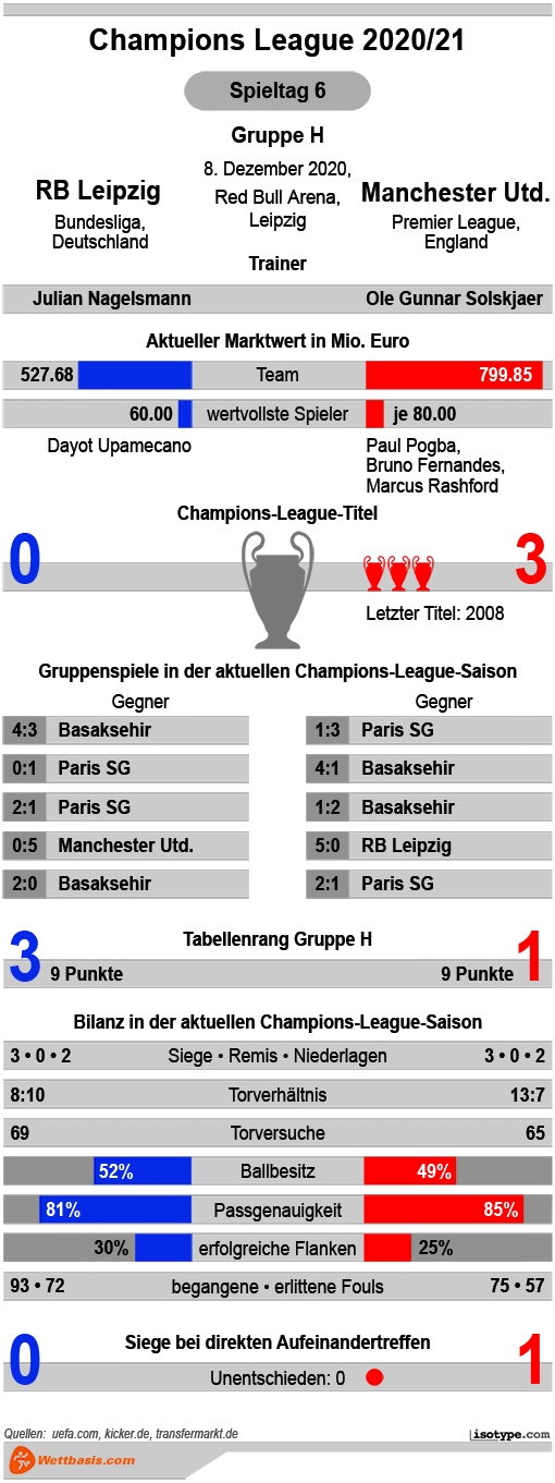 RB Leipzig - Manchester United Wettquoten im Vergleich 08.12.2020 - 1/X/2