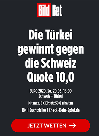 Inzwischen werden für einen Sieg von Schweiz gegen Türkei Quoten von 1.72 angeboten, für eine Prognose auf die türkische Nationalmannschaft hingegen Wettquoten von 5.00.
