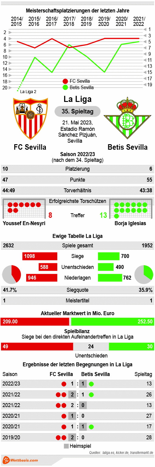 Sevilla - Betis Sevilla Direkter Vergleich / H2H-Bilanz