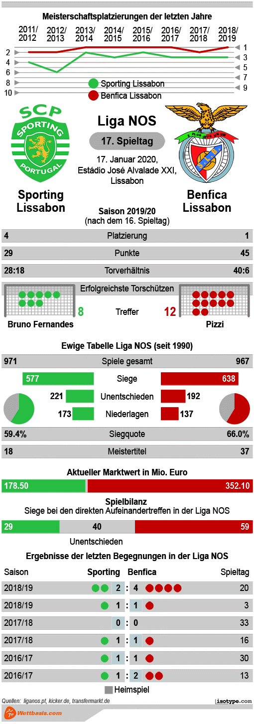 Sporting Lissabon vs. Benfica Lissabon Direkter Vergleich [+ Infografik]