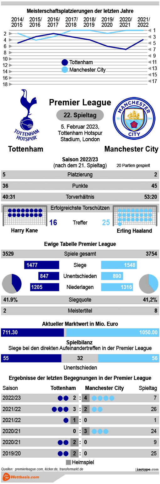 Unser Tottenham - Manchester City Tipp im Quotenvergleich 05.02.2023 - 1/X/2