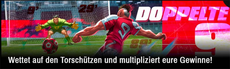 - Preis: Falls euer Torschütze in der 9., 19., 29., 39., 49., 59., 69., oder 79. trifft, werden eure Gewinne verdoppelt. Falls er in der 89. trifft, werden eure Gewinne mit 9 multipliziert.