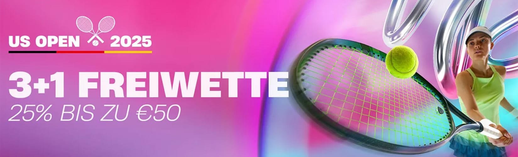 Wette auf drei Spiele der US Open und erhalte 25% deines Einsatzes als Freebet + kombinierbar mit der exklusiven 10€ Freiwette