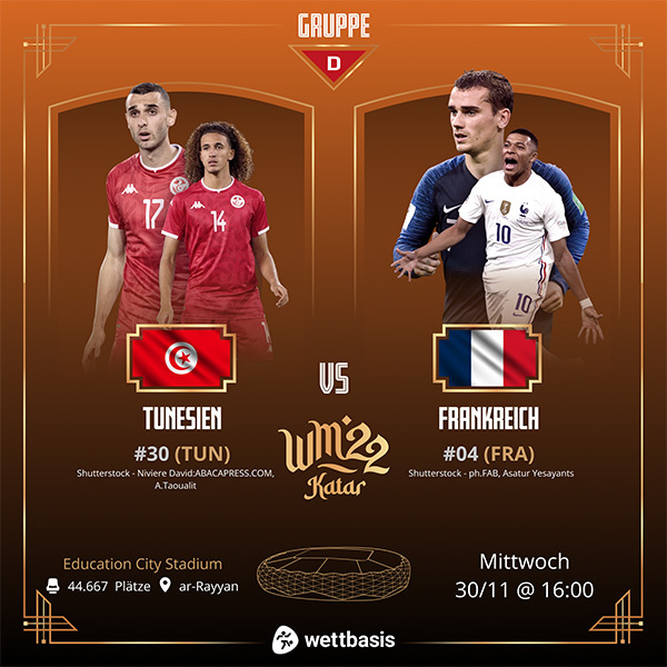 Unser WM-Tipp heute, Tunesien – Frankreich im Quotenvergleich 30.11.2022 – 1/X/2