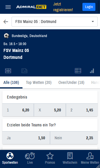 Im Zuge unseres Tests gab es am mobilen Angebot von AdmiralBet nichts zu beanstanden. Die mobile Anwendung verschafft sogar unerfahrenen Tippfreunden einen schnellen sowie problemlosen Einstieg.