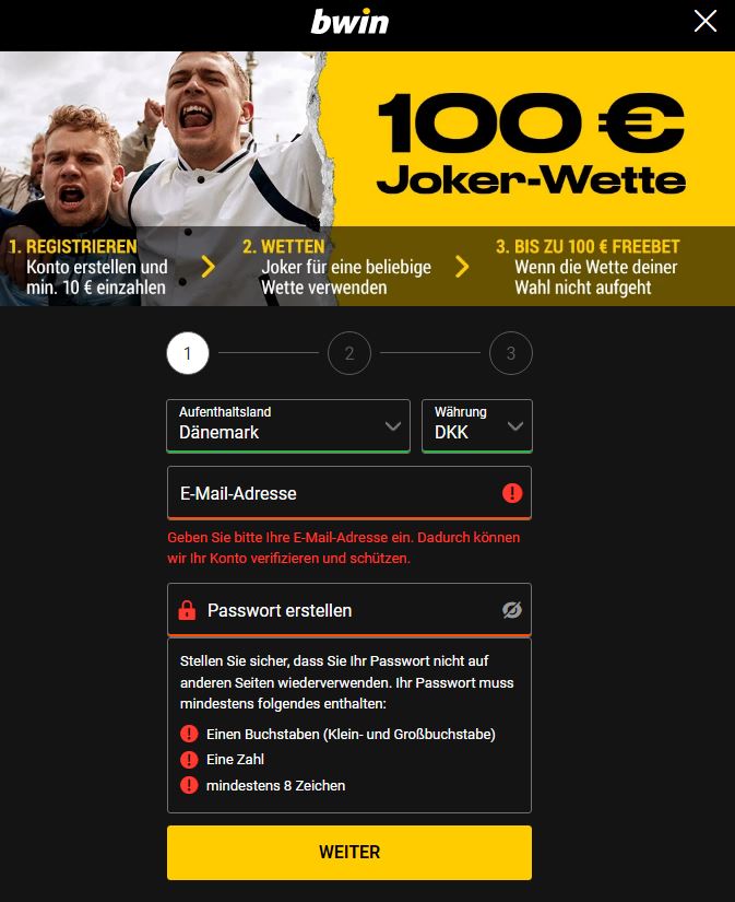 Du kannst die Einzahlung bei Bwin ganz unkompliziert durchführen. Damit Du Dein Geld auf das Konto des Buchmachers überweisen kannst, musst Du Dich zuerst beim Buchmacher registrieren.