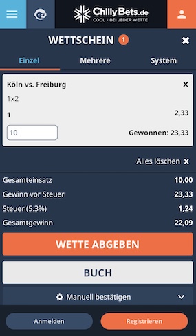 Für nicht wenige Wett-Enthusiasten ist der Entfall sogar ein Vorteil, denn nicht jeder möchte Fremdsoftware auf seinem Smartphone oder Tablet haben. Bei Chillybets genügt es aus, die URL in den Browser aufzurufen und danach fortzufahren.