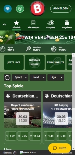 Da Crazybuzzer Sportwetten nicht über eine Native App, zum Beispiel für iOS oder Android, abgerufen werden können, bleibt Usern für Wetten unterwegs aktuell nur eine mobile optimierte Version der Webseite.
