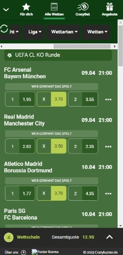 Alternativen zur Browser App gibt bei Crazybuzzer nicht. Die Verwendung anderer Wettanbieter Apps setzt natürlich die Registrierung bei weiteren Buchmachern voraus.