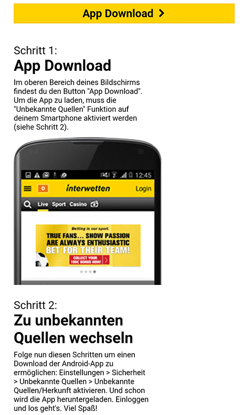 Aktuell bietet der Austro-Bookie Interwetten Nutzern die Gelegenheit, die App auf zwei verschiedenen Wegen zu nutzen.