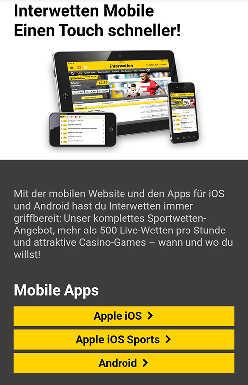 Ein weiterer Vorteil besteht außerdem in der Tatsache, dass der Interwetten Einzahlungsbonus über die App verfügbar ist.