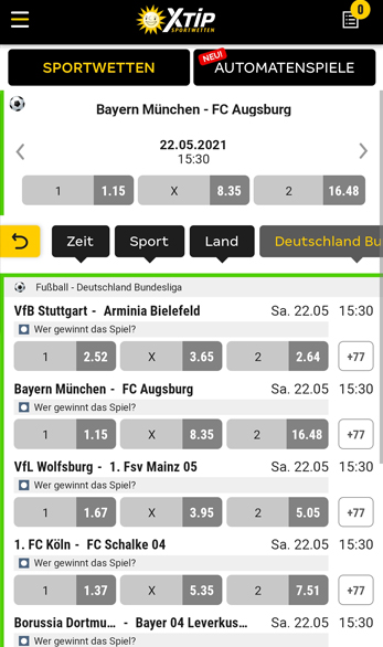 Die Merkur Bets App zeichnet sich gleich beim Start durch Übersicht aus. Dafür sorgen fix verankerte Leisten am Screenanfang und am Screenende.
