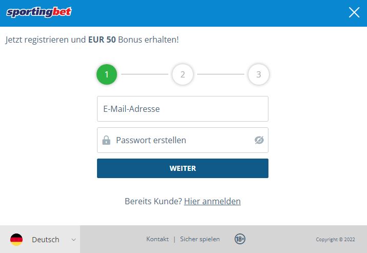 Um die Einzahlung bei Sportingbet mit PayPal durchführen zu können, ist zuerst eine Registrierung beim Buchmacher erforderlich.