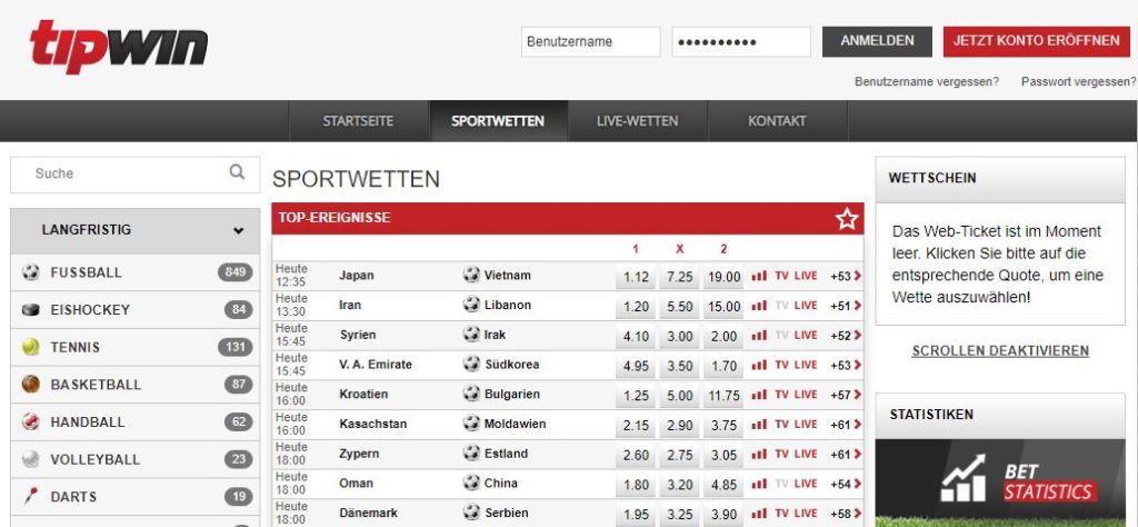 Zuerst ist immer die Registrierung beim Buchmacher durchzuführen. Diese sollte aber nur wenige Minuten in Anspruch nehmen. Danach loggen sich User bei Tipwin mit ihren Kundendaten ein.