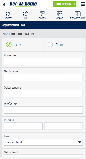 Schritt 2: Fülle das Bet at Home Registrierungsformular aus