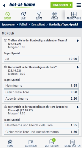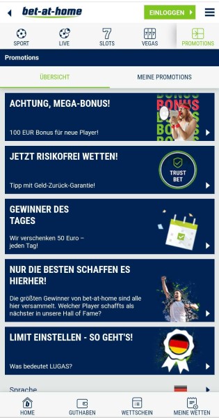 Uns ist kein spezieller mobiler Bet-at-home Neukundenbonus bekannt. Du kannst allerdings den normalen Bet-at-home Willkommensbonus auch mobil nutzen.