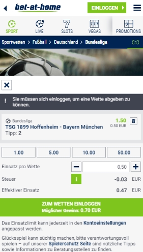 Bet-at-home Wettschein via Mobilgerät öffnen