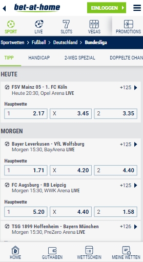 In Sachen Wettquoten der Live Wetten haben wir leider nicht die besten Bet at home Erfahrungen gemacht, hier ist der Austro Bookie im Wettanbieter Vergleich lediglich Mittelmaß. Für Livewetten beobachteten wir Wettquoten, die einige Prozentpunkte unter den Ausgangsquoten liegen.