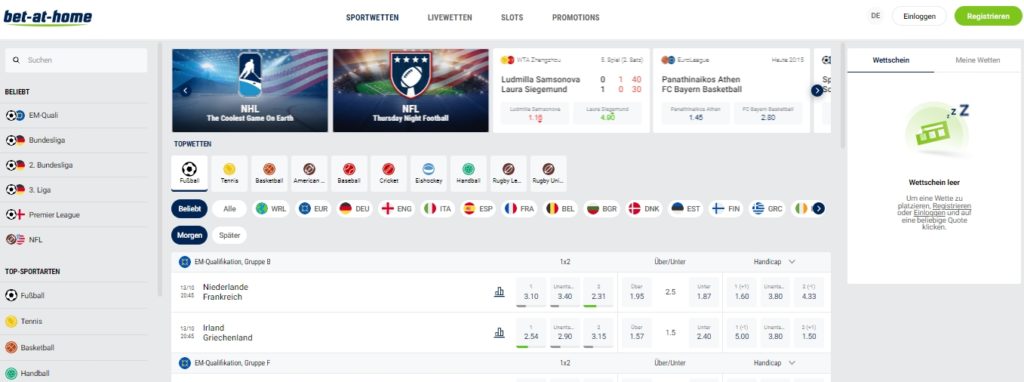 Bet-at-home Deutschland Wettprogramm – Top-Sportarten: