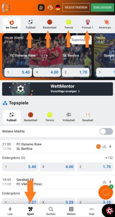 - 1. Einzahlung 1x mit Sportwetten umsetzen