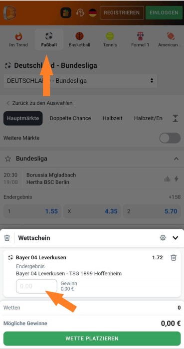 - Schritt: Wettkonto mit mind. 10 € aufladen.