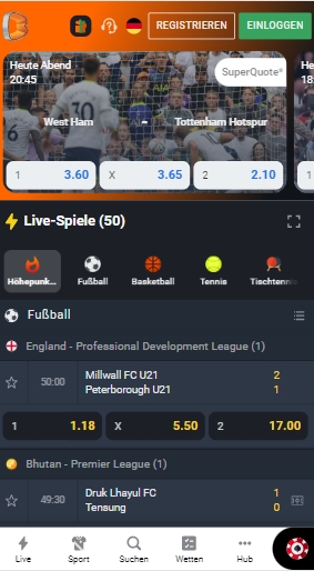 Auch in diesem Sektor trumpft der online Wettanbieter groß auf und kann überzeugen. Sämtliche Spiele sowie Märkte, die Ihnen im Pre Play Bereich geboten werden, stehen im Regelfall auch im Live-Sektor zur Verfügung. Der Fokus wird auch hier auf Fußball, Handball, Basketball sowie Tennis gelegt.