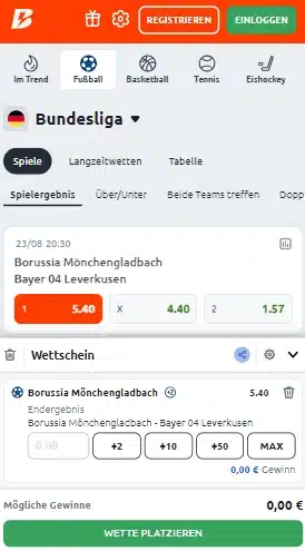 Im Wettschein ist der Wetteinsatz zu bestimmen. Um letztendlich die Wette zu spielen, muss der „Wette platzieren“ – Button getätigt werden. Prompt wird die Sportwette direkt abgeschlossen.