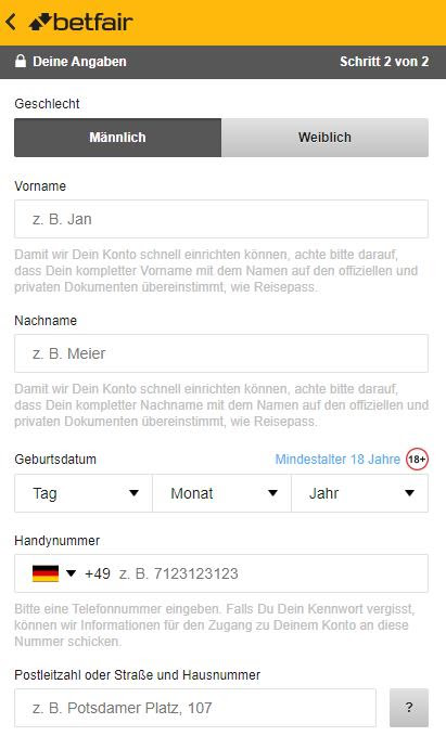 Hinweis: Deine Angaben zu Deiner Person müssen korrekt sein, damit es nicht gegen die AGB und Bonusbestimmungen verstößt.